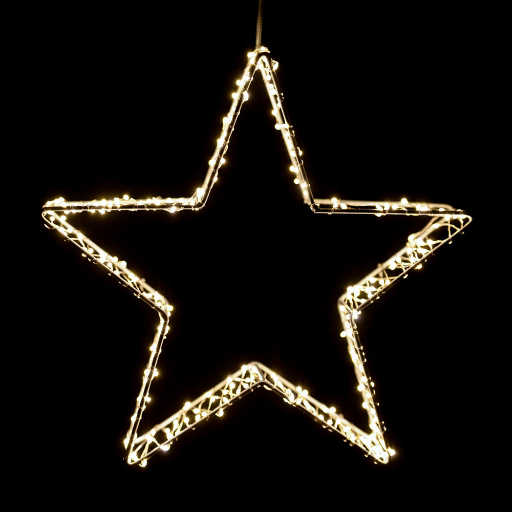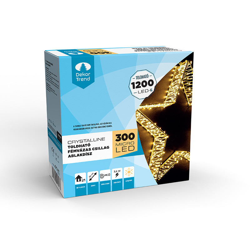 Crystalline závesná hviezda s kovovým rámom, 300 mikro LED, TEPLÁ BIELA, priemer 30 cm