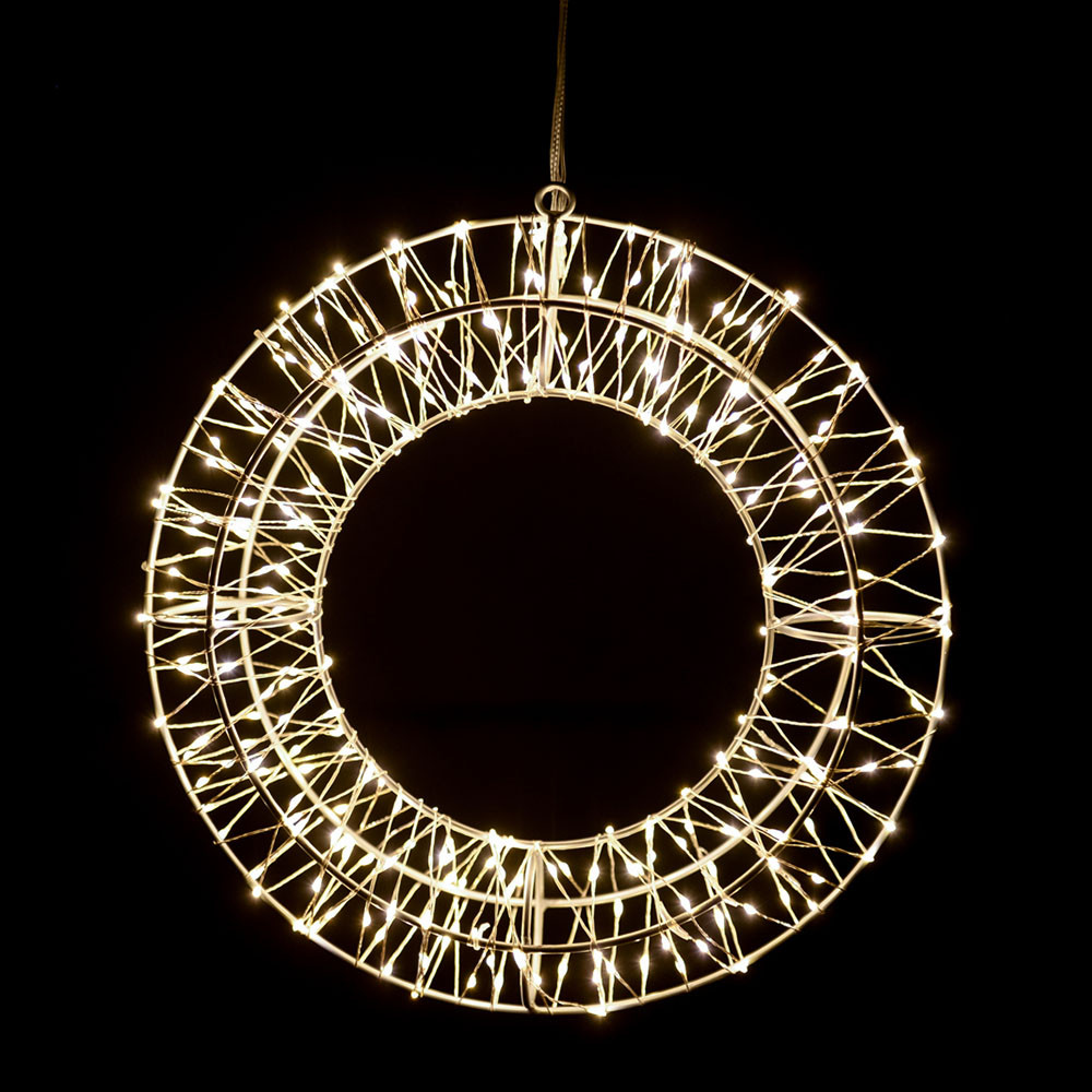 Crystalline závesná kovová dekorácia na okno, 300 mikro LED, TEPLÁ BIELA, priemer 30 cm