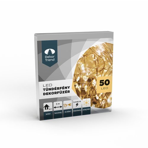 Vílie svetielka svetelná reťaz, teplá biela, 500 cm, 50 LED, medený kábel