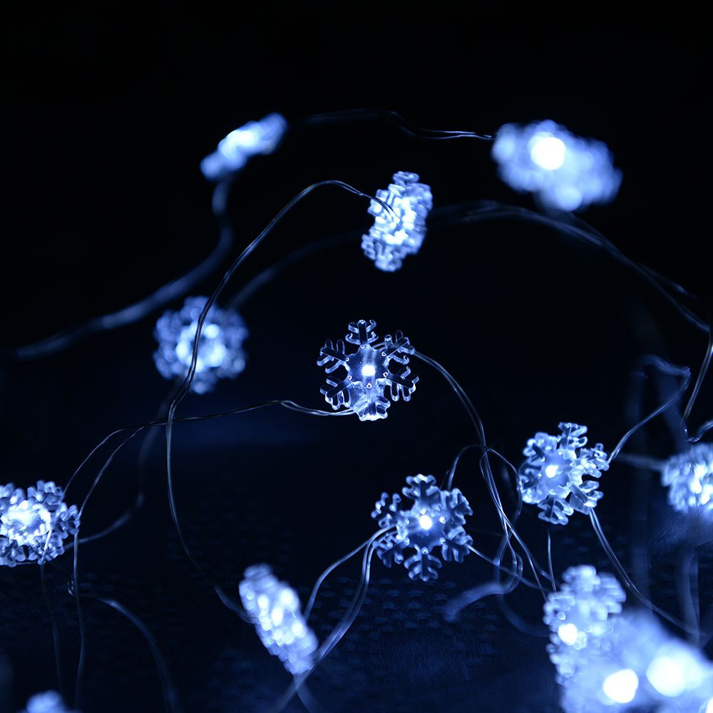 Vílie svetielka s vločkami, studená biela, strieborný medený kábel, 200 cm, 20 LED
