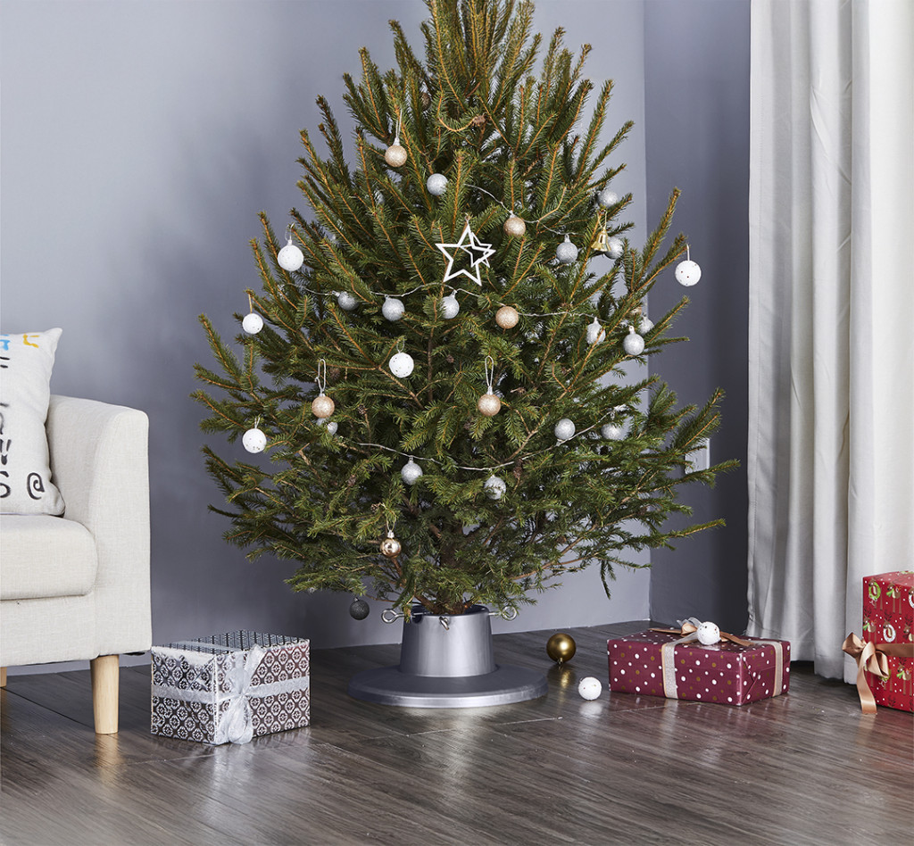 Vyrobený z pevného plastu, stabilne udrží stromčeky až do výšky 2,1 metra.